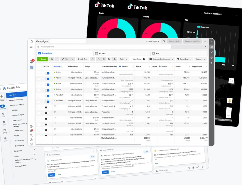 Meta, TikTok & Google. The 3 platforms we master for new customer growth.