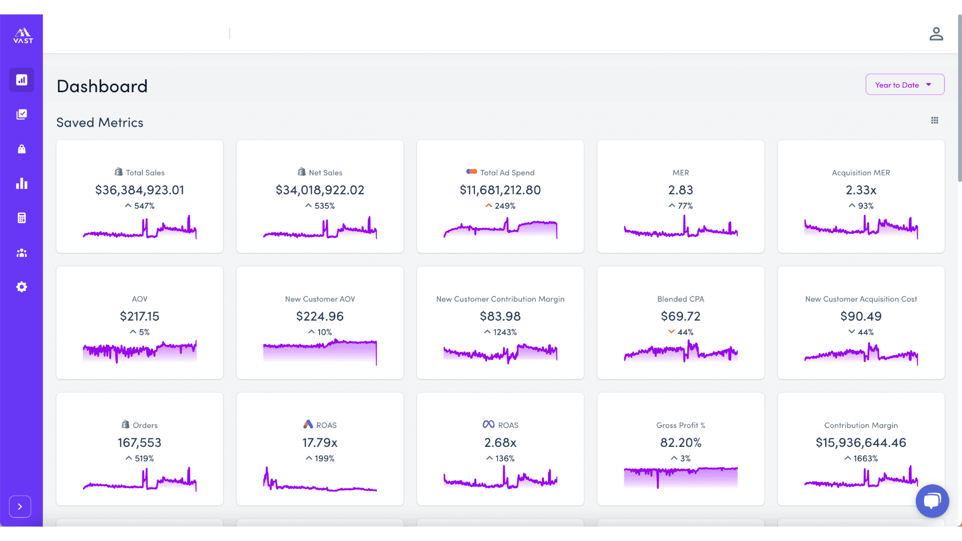 We provide every client with our own Full eCom Dashboard so they have a full 360º view of their business health on any given day. We pride ourselves in being profit first & focus on metrics like Contribution Margin & First Order Profitability.